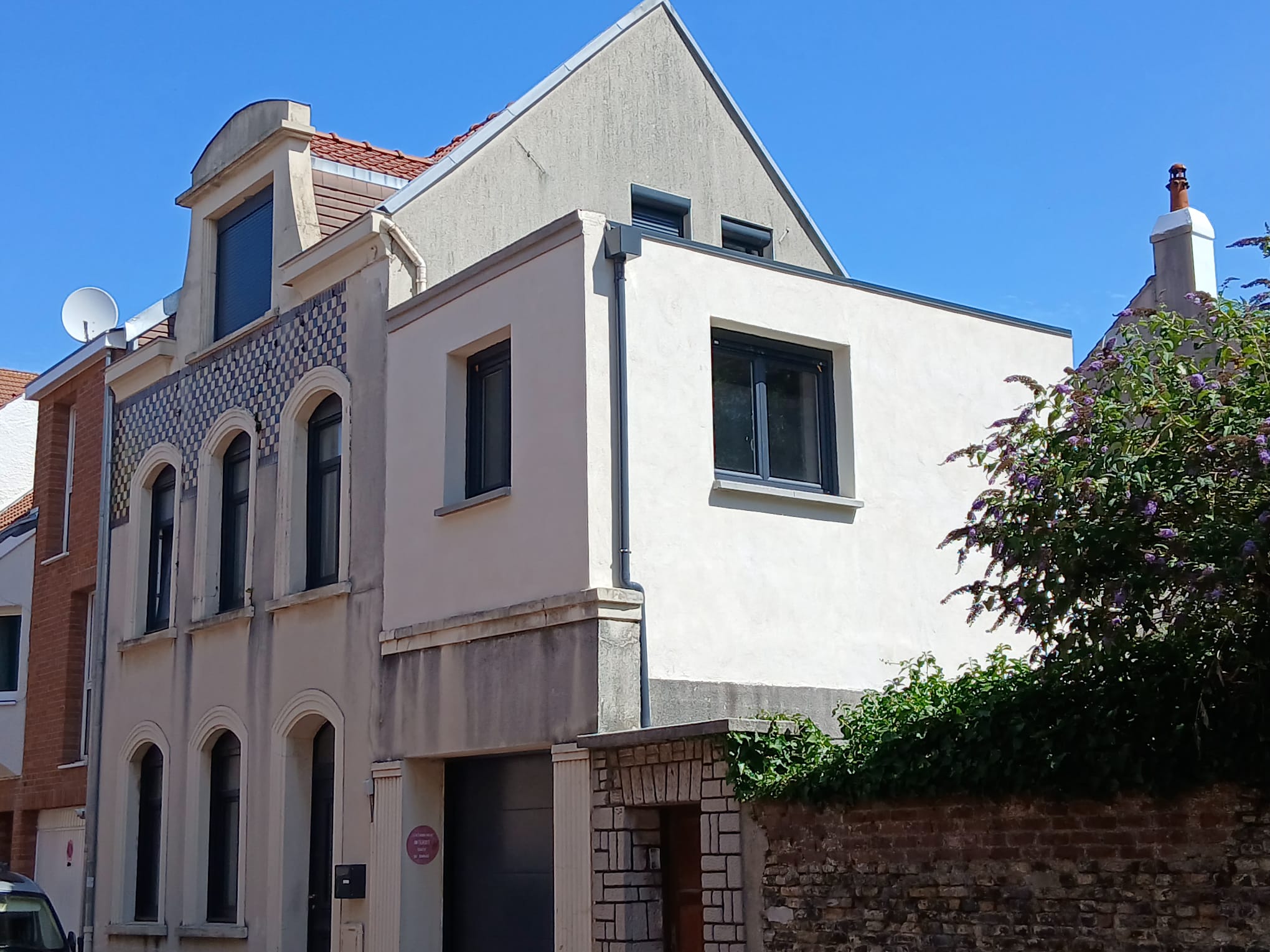 Cette maison du centre-ville de Calais a bénéficié d’un ravalement complet. La façade, anciennement noircie par le temps et les intempéries, a été entièrement nettoyée, restaurée et repeinte pour retrouver son éclat d’origine, avec des finitions soignées sur les encadrements et les moulures.